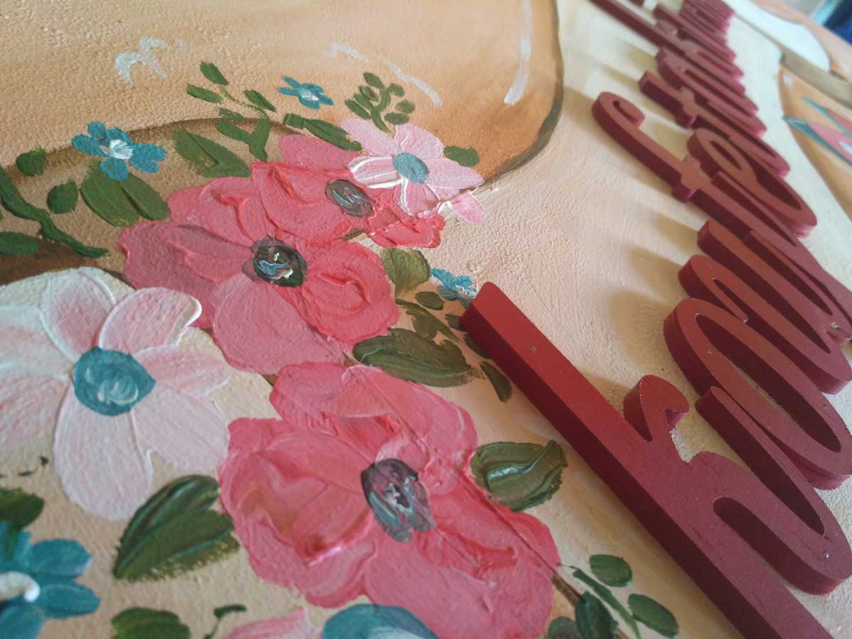 Οι χειροποίητες επιγραφές συμπληρώνουν τη ζεστή ατμόσφαιρα ενός καταστήματος. Αρχικά σχεδιάζεται ή προσαρμόζεται το υπάρχον λογότυπο στην επιθυμητή διάσταση για να ταιριάζει στις ανάγκες και στην πρόσοψη του καταστήματος. Κατόπιν το εικαστικό αποτυπώνεται με ακρυλικά χρώματα και ξύλινα ανάγλυφα στοιχεία, πάνω στη βασική ξύλινη επιφάνεια. Τα υλικά που χρησιμοποιούνται είναι κατάλληλα για εξωτερικό χώρο, ώστε να είναι ανθεκτική για μεγάλο χρονικό διάστημα. Όπως όλες οι χειροποίητες κατασκευές έτσι και μια ταμπέλα φτιαγμένη και ζωγραφισμένη στο χέρι δίνει ξεχωριστό ύφος, φιλική και ζεστή αίσθηση.